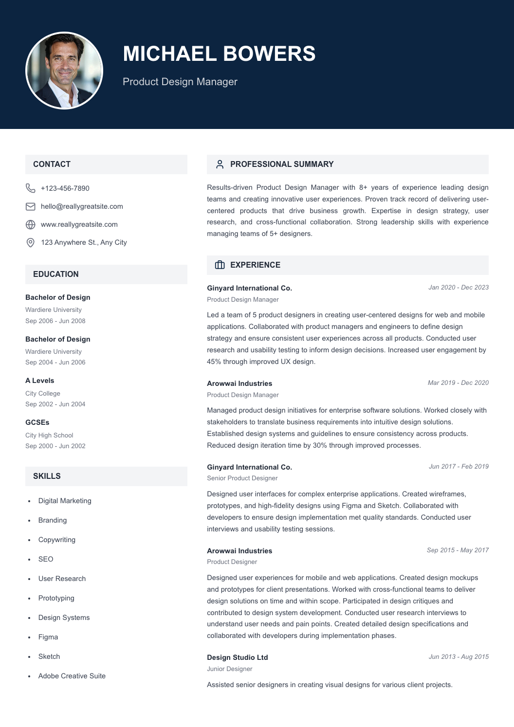 Sophisticated templates for C-suite executives, directors, and senior managers. Emphasises leadership and strategic achievements.